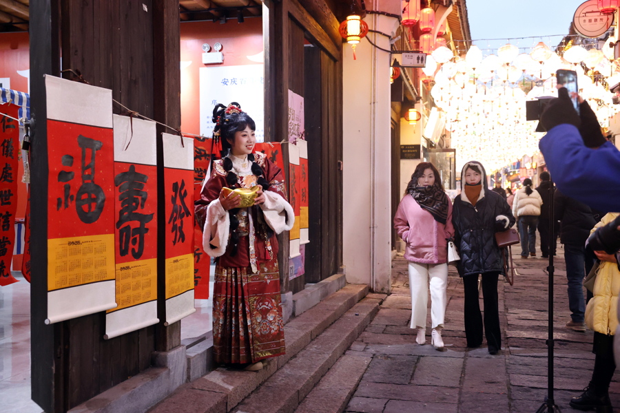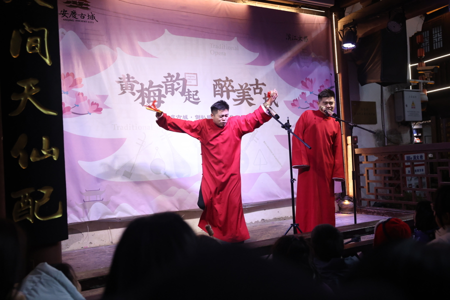 元旦假期,安徽安庆以“一个有戏的地方”文旅名片为IP,将老城步行街装扮得灯火璀璨、年味浓郁,“黄梅韵起·醉美古城”系列文化娱乐活动轮番上演,为游客奉上了一场兼具传统韵味与潮流活力的文旅盛宴,营造出舒适欢欣的游玩氛围。