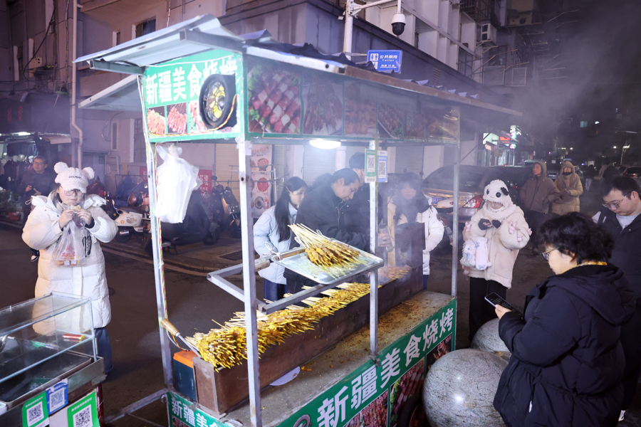 老字号饭店和街头美食摊点并存,香气四溢。